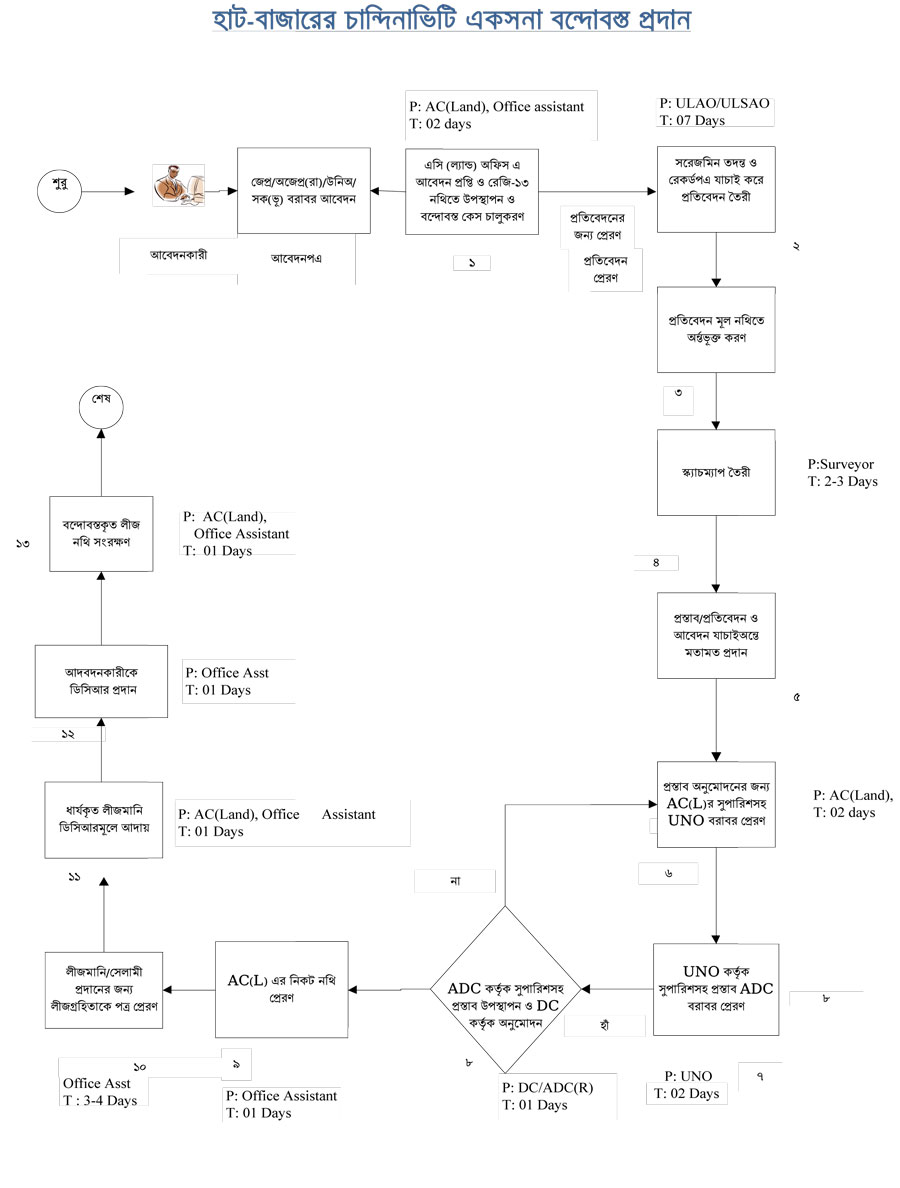 | ২ | হাট বাজারের চান্দিনা ভিটি একসনা বন্দোবস্ত প্রদান | দেখুন | |